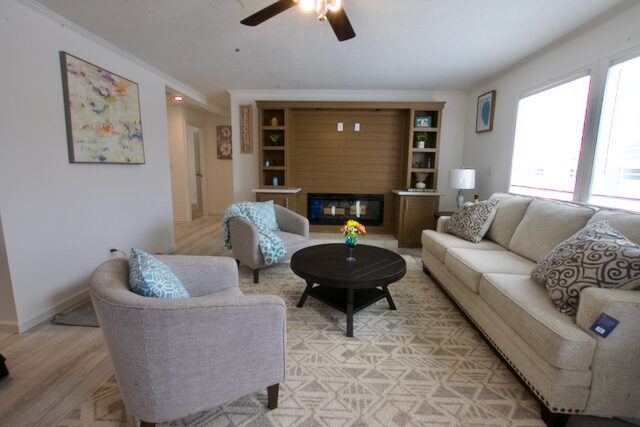 This flow-friendly three bedroom home is ready for you! The Sullivan is the king of convenience with its beautiful kitchen island for prep and impromptu meals, built in entertainment and fireplace in the main living area, walk-in pantry and walk-in shower.